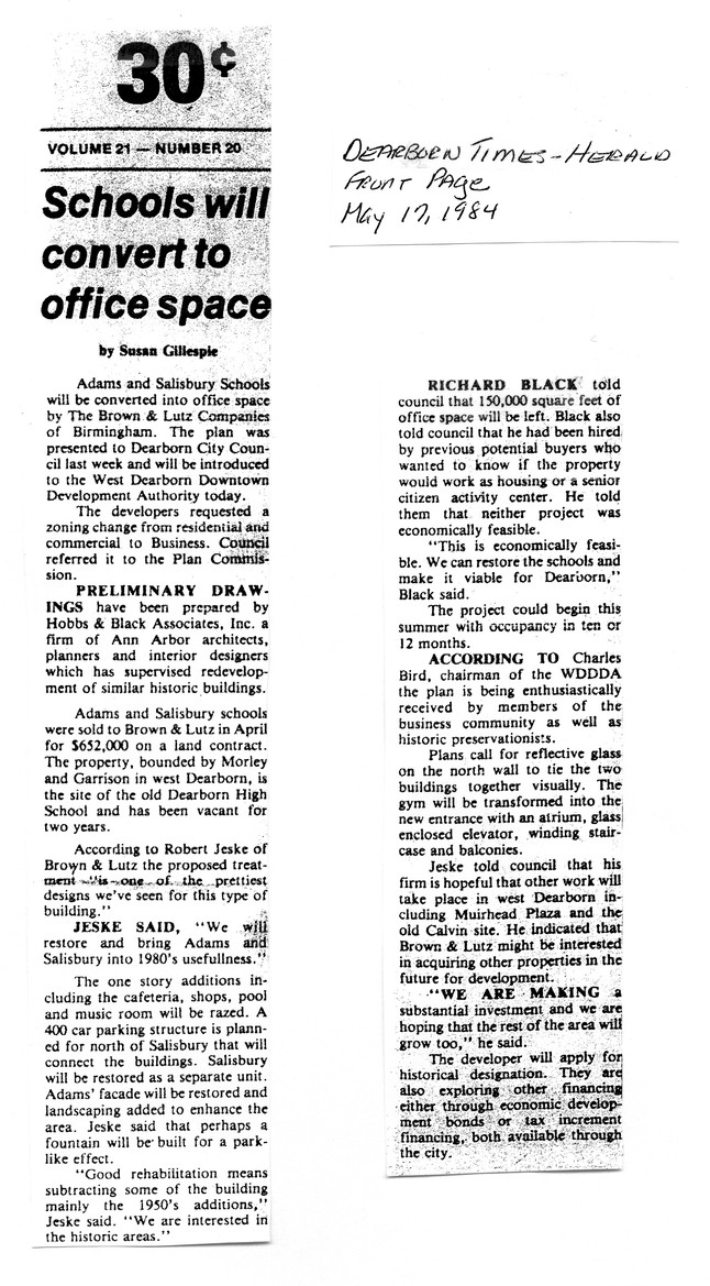 During the Depression of the 1930's the school was used as a soup kitchen and after the Second World War a new wave of growth came to Dearborn. In 1940, an additional wing was added, including 8 more classrooms and a kitchen. By 1951, enrollment reached 1,400 students. One of the unique science programs established here in the 1950's was the Horticultural Gardens.