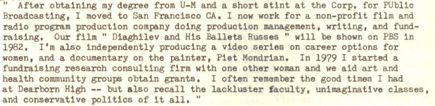 Craig invited me to the Senior Prom and if I can find the picture I will post it. We both went on to the University of Michigan together. He was smart with a dry sense of humor and those innocent early days of my life connected to him are fondly remembered. Rest in peace and forever young....